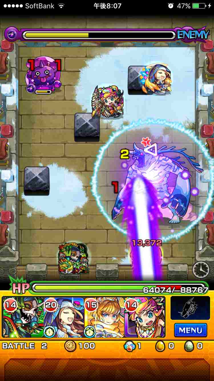 バトル2ギミック攻略:中ボス(ブリザーガ進化前)1回目