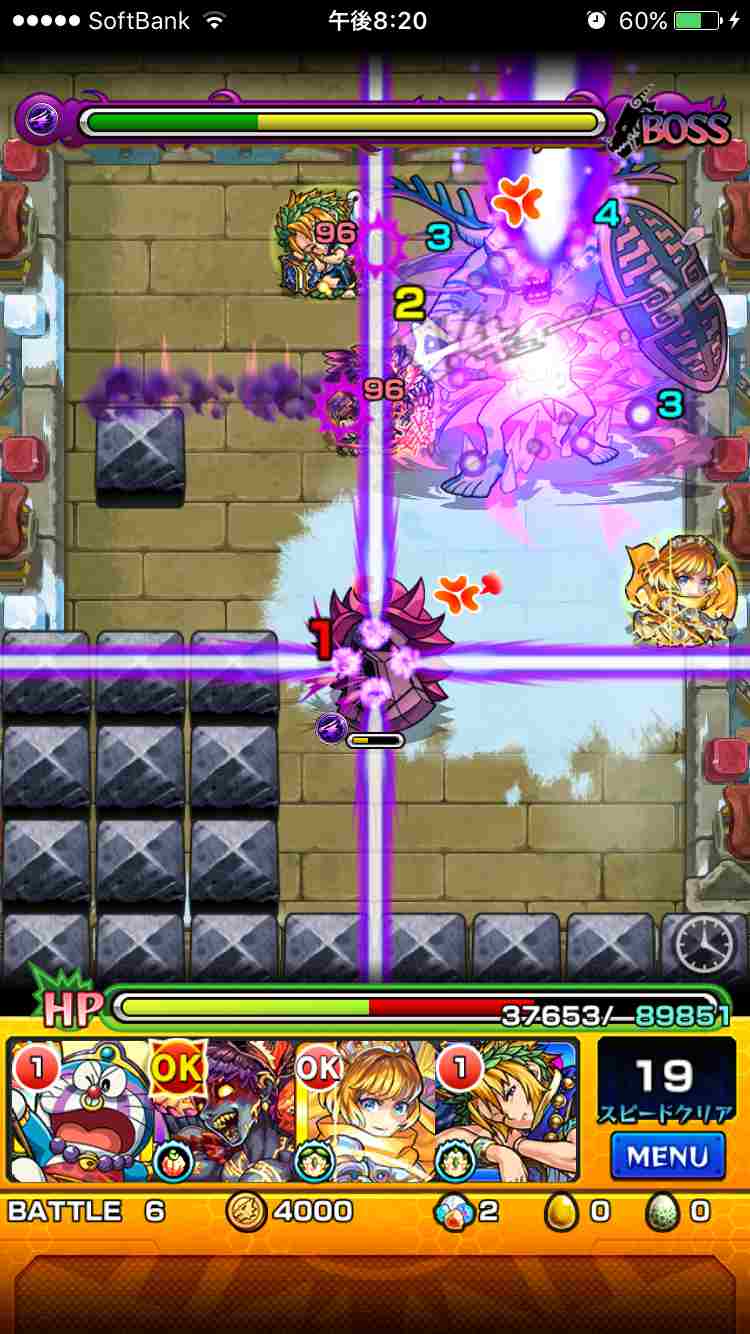 ◆中ボスとして登場するブリザーガ(進化前)は下記のパターンで攻撃してきます。